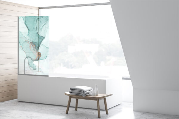 Mit einem individuell wählbaren Motiv gestaltest Du Dein Highlight im Badezimmer – und machst jedes Mal Duschen zu einem besonderen Erlebnis. Diese bedruckte Duschtrennwand als Dein spannendes Designelement mit Milchglaseffekt ist einfach mit den mitgelieferten U-Profilen zu montieren und dann aufgrund ihres geringen Fugenanteils leicht zu reinigen.